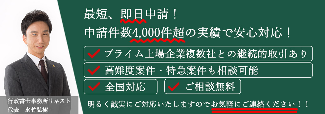 お客様にとって許可が不要な場合や、外部の許可申請代行サービスを使わずに社内で対応した方がメリットが大きいと思われる場合、理由をご説明してお断りすることがございますので、そちらについてもご了承ください。